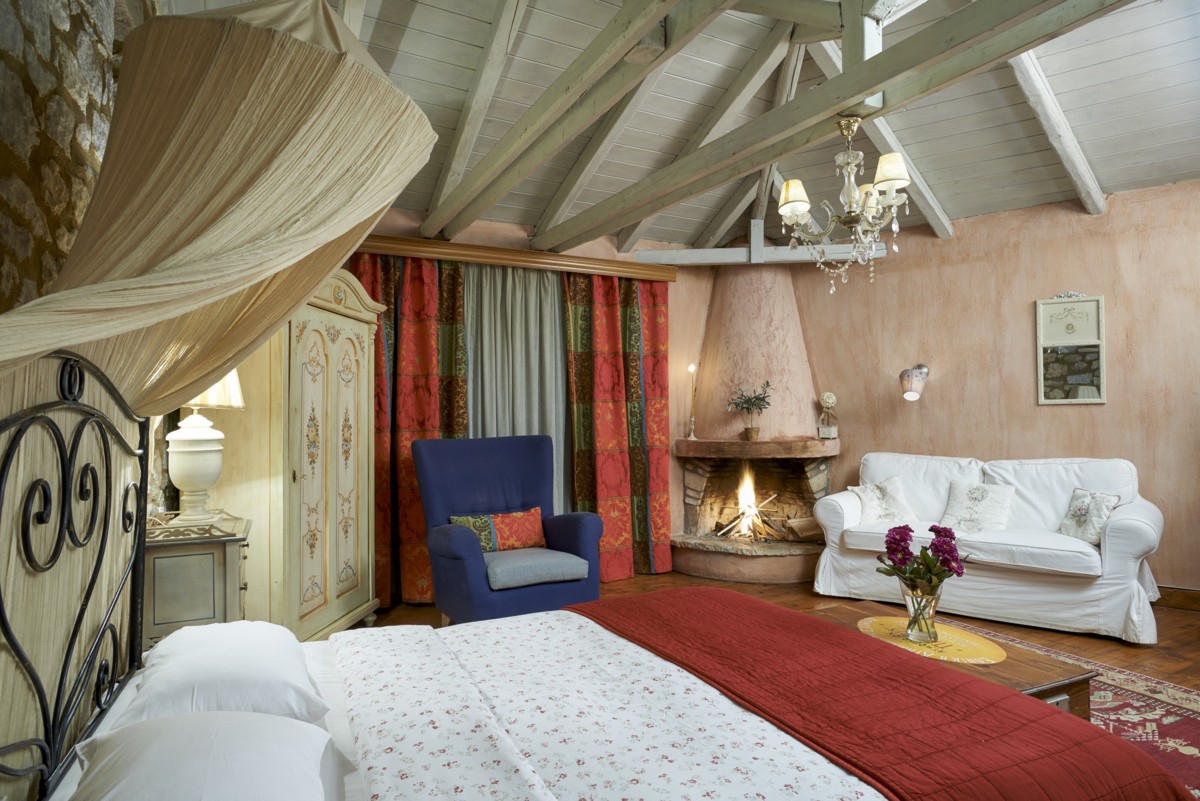 Διαθέτει τζάκι, δορυφορική TV και cd player, στήλη υδρομασάζ.